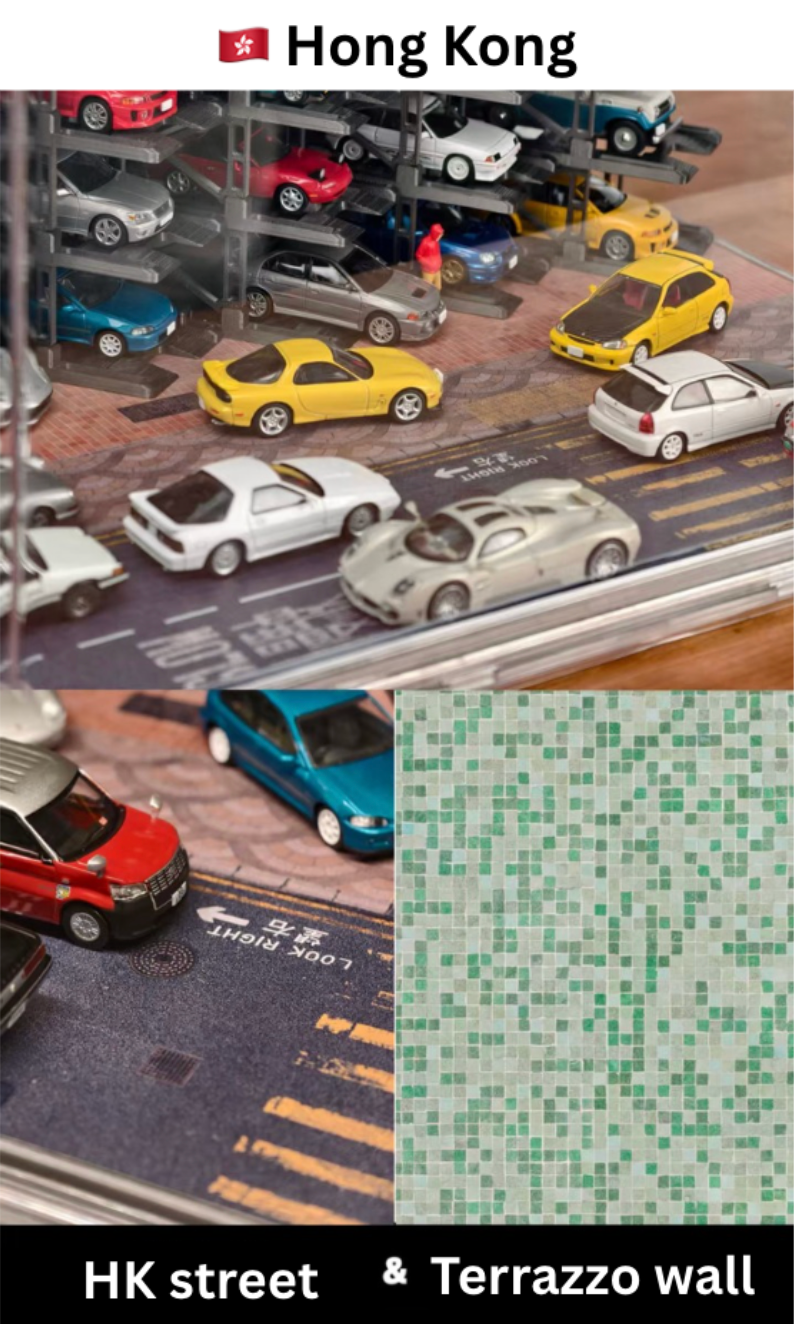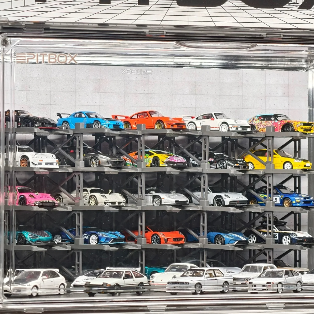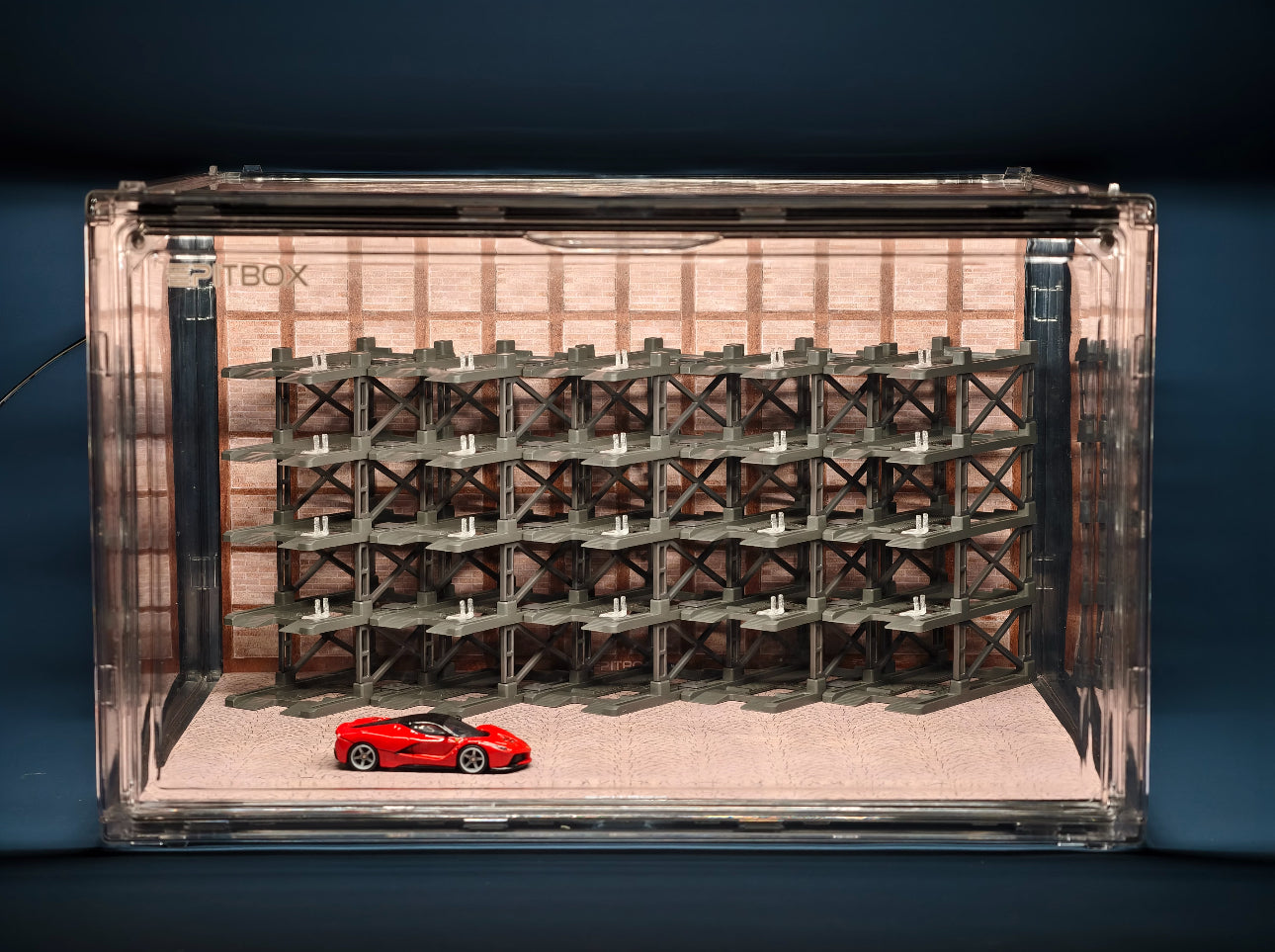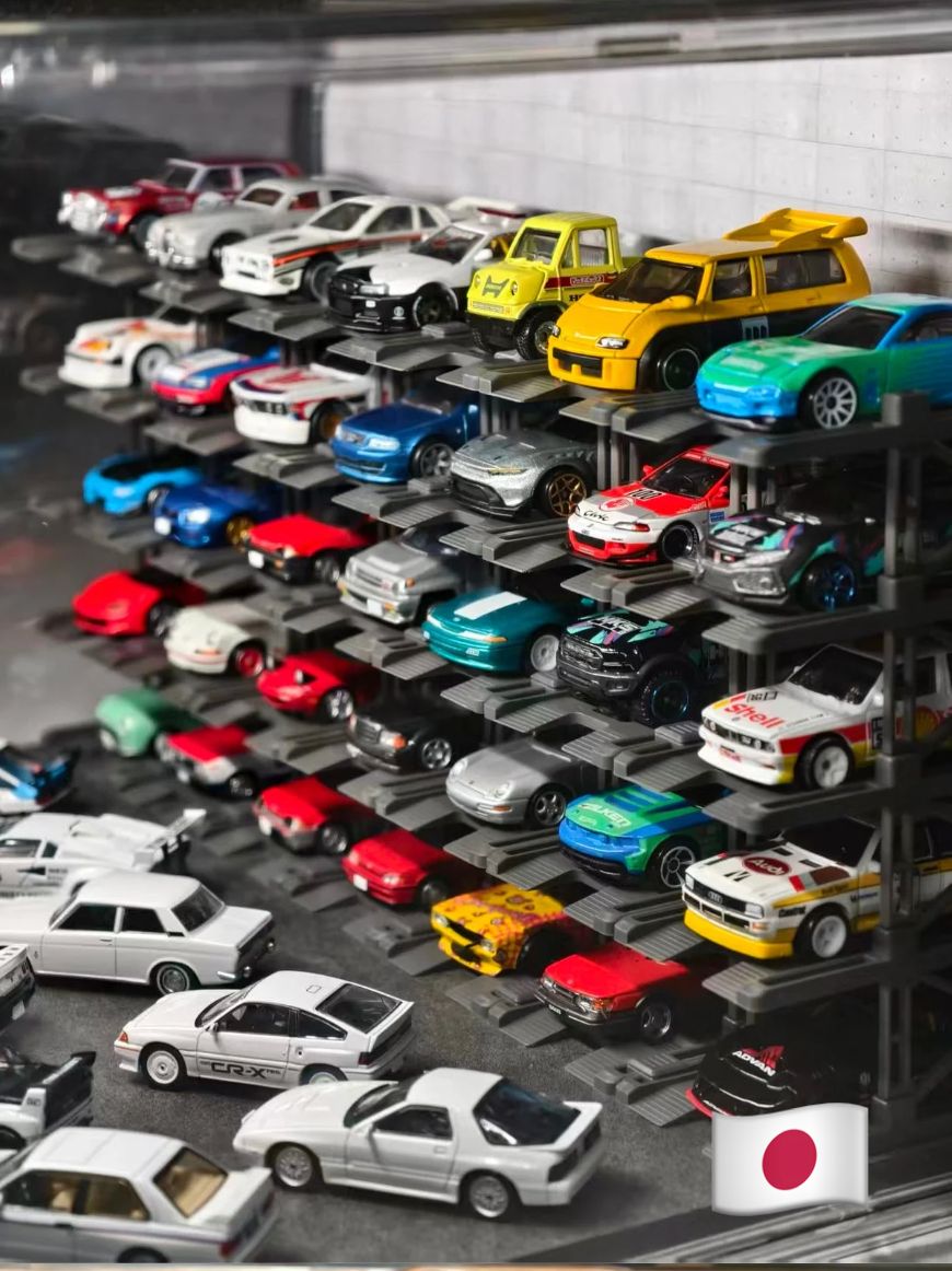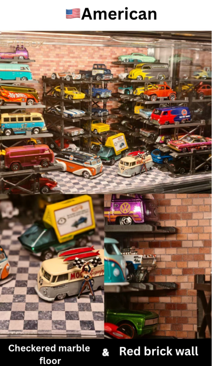 Box contents: Display case (magnetic door), 25 Parking racks, LED strip & power, original stylized background and platform.