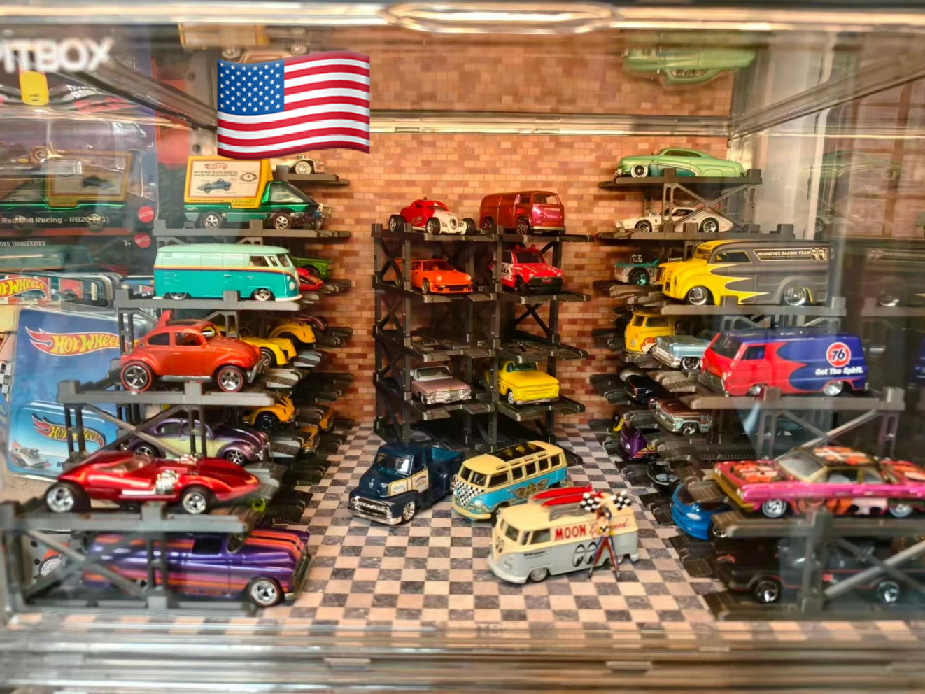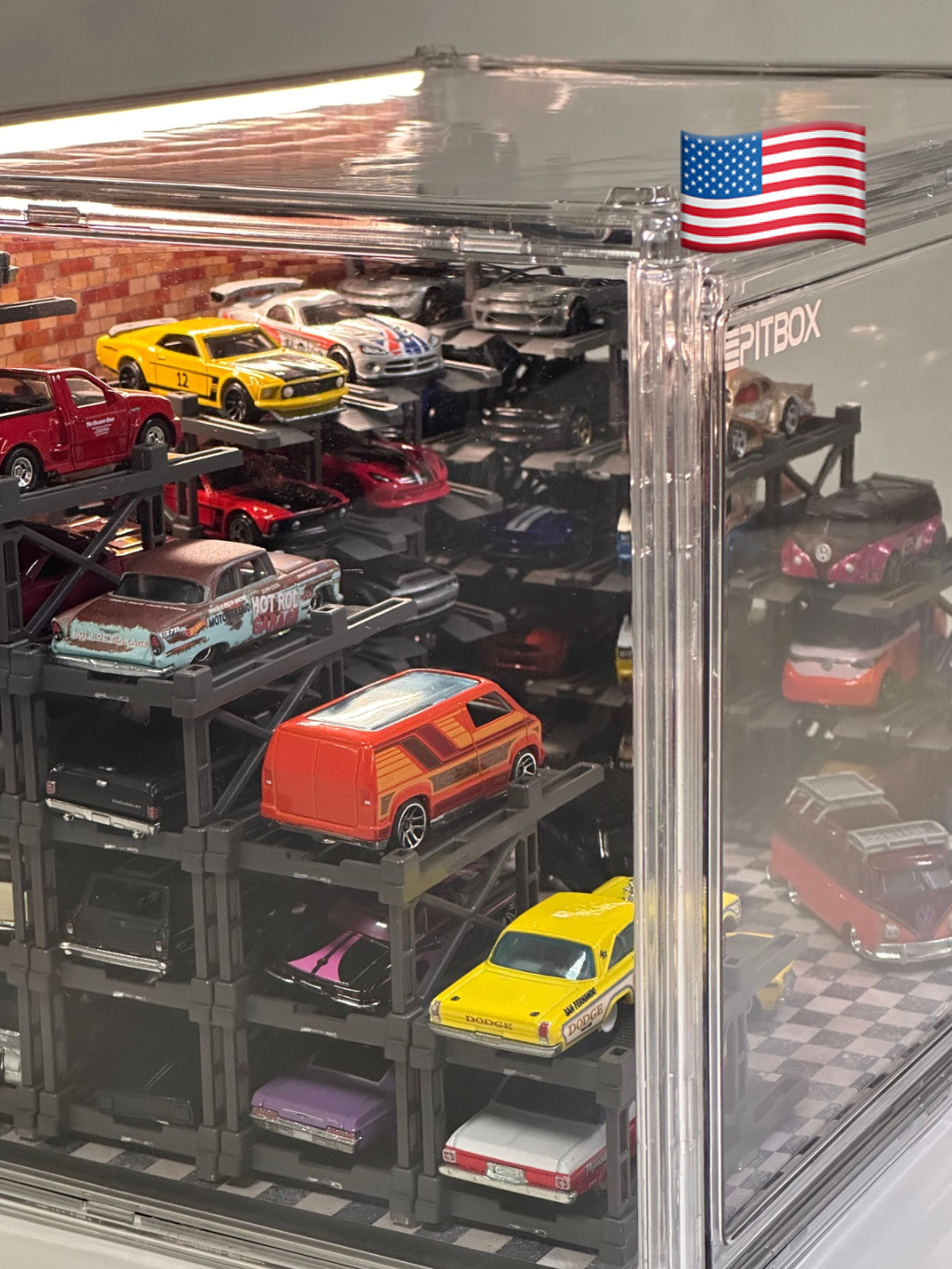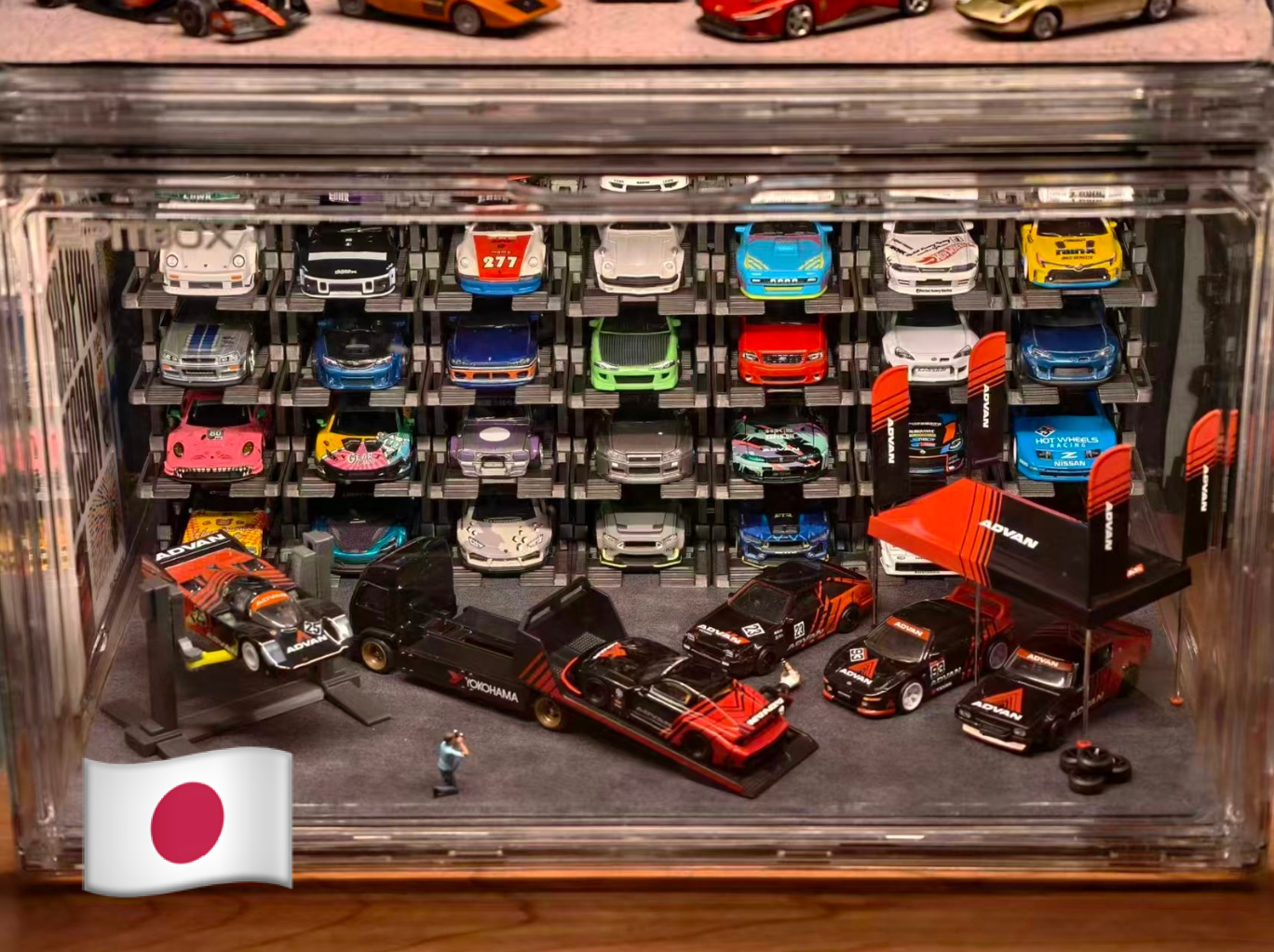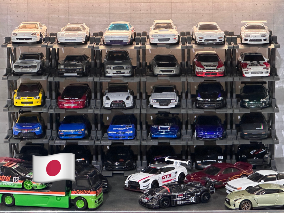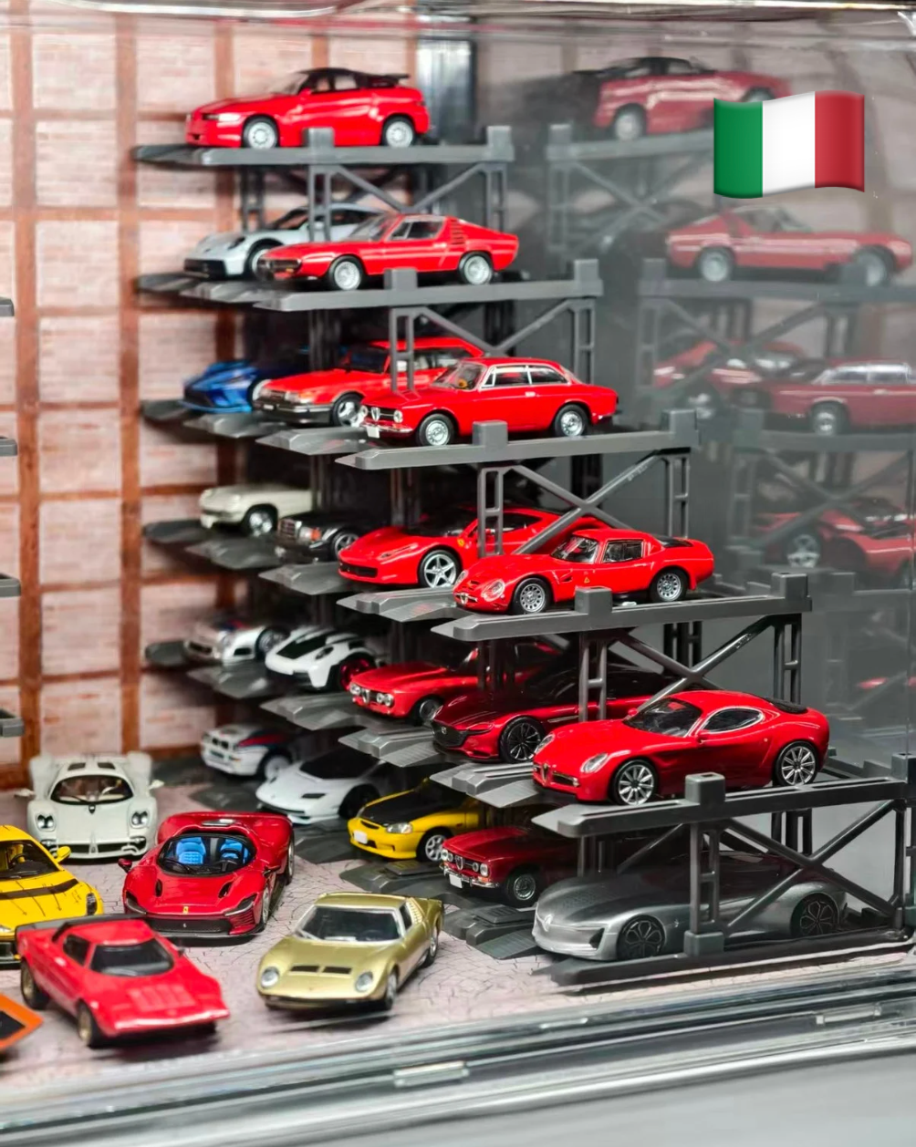 Box contents: Display case (magnetic door), 25 Parking racks, LED strip & power, original stylized background and platform.