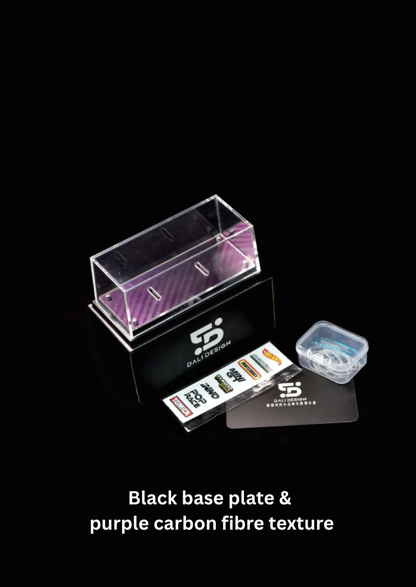 (Sold)DALI Box Pro- Premium Acrylic 1:64 Car Model Display Box (Black base plate & purple carbon fibre texture)